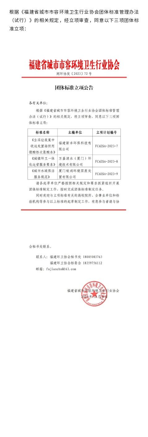 团体标准立项公告