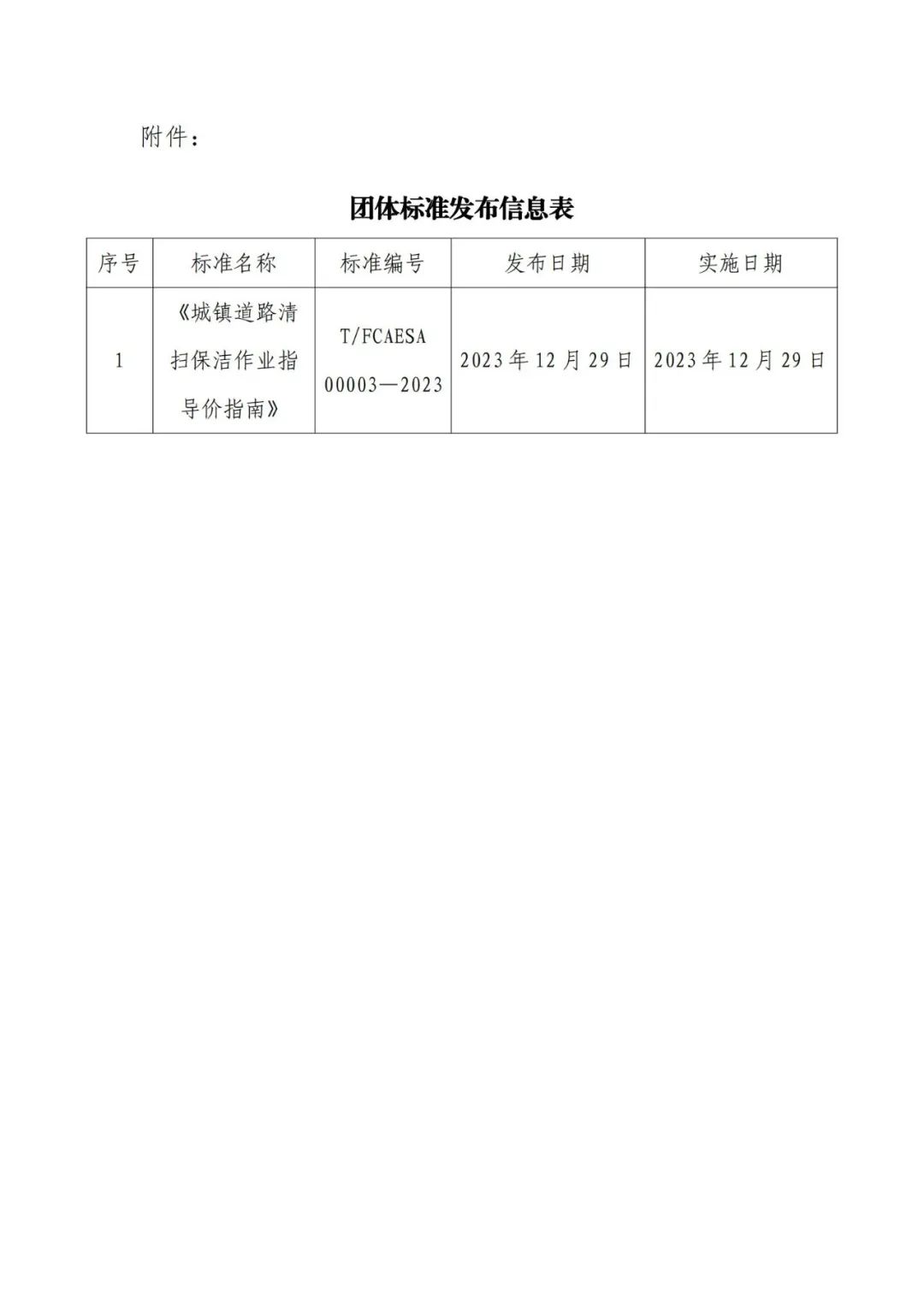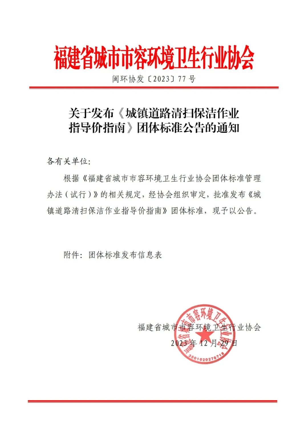 关于发布《城镇道路清扫保洁作业指导价指南》团体标准公告的通知