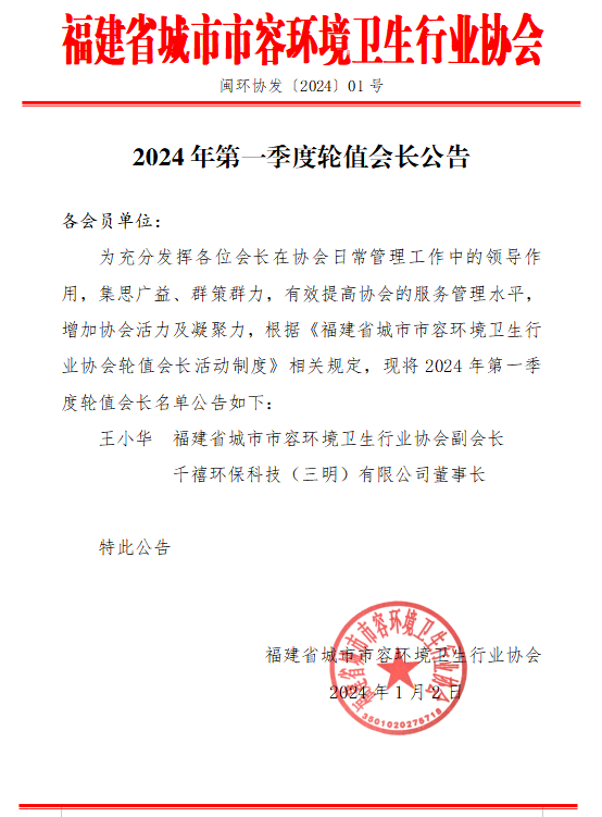 2024年第一季度轮值会长公告