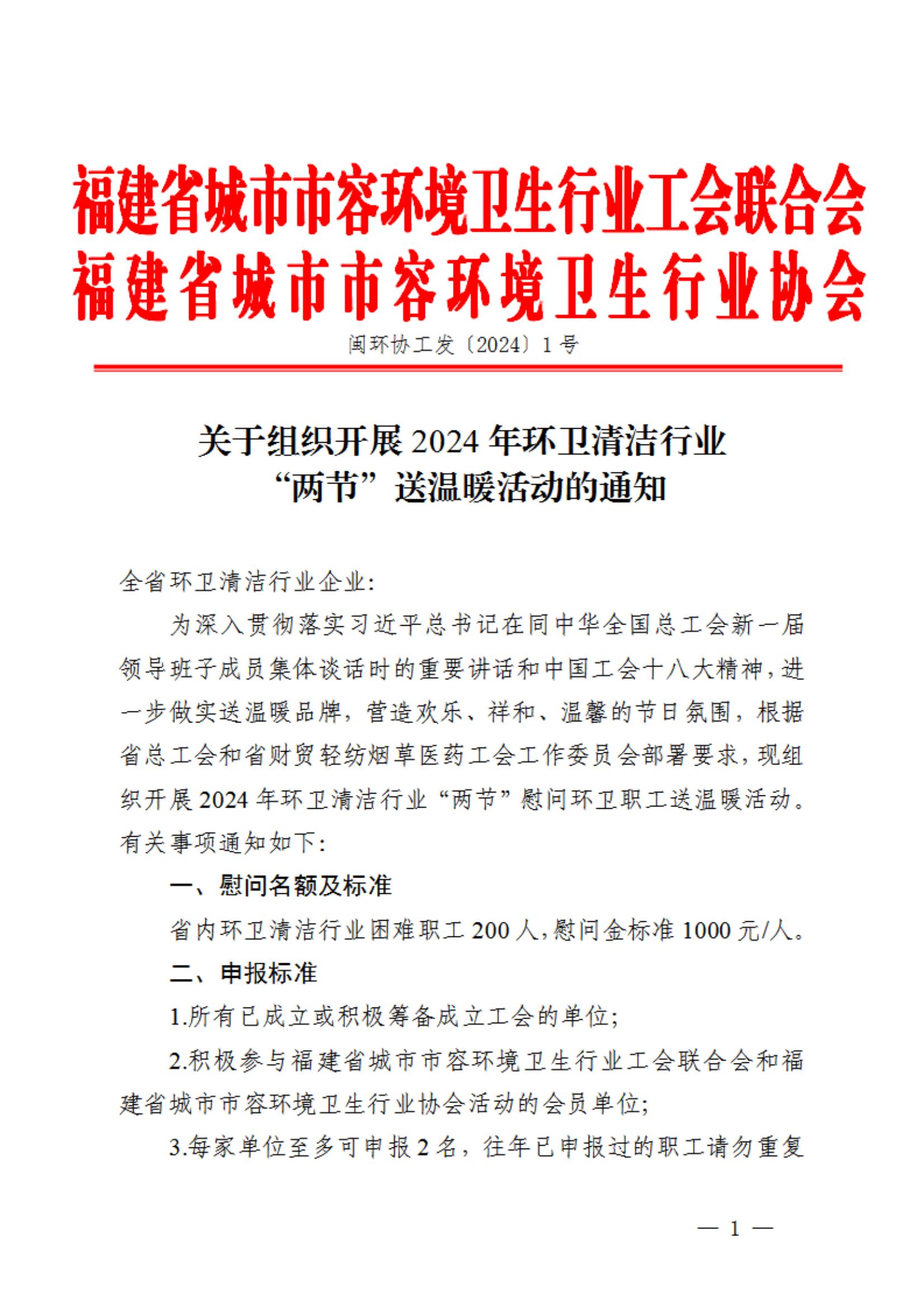 关于组织开展2024年环卫清洁行业“两节”送温暖活动的通知