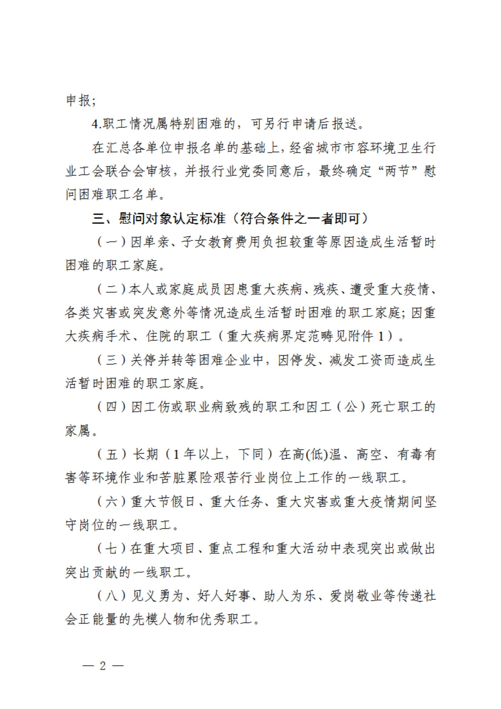 为深入贯彻落实习近平总书记在同中华全国总工会新一届领导班子成员集体谈话时的重要讲话和中国工会十八大精神,进一步做实送温暖品牌,营造欢乐、祥和、温馨的节日氛围,根据省总工会和省财贸轻纺烟草医药工会工作委员会部署要求,现组织开展2024年环卫清洁行业“两节”慰问环卫职工送温暖活动有关事项通知如下: