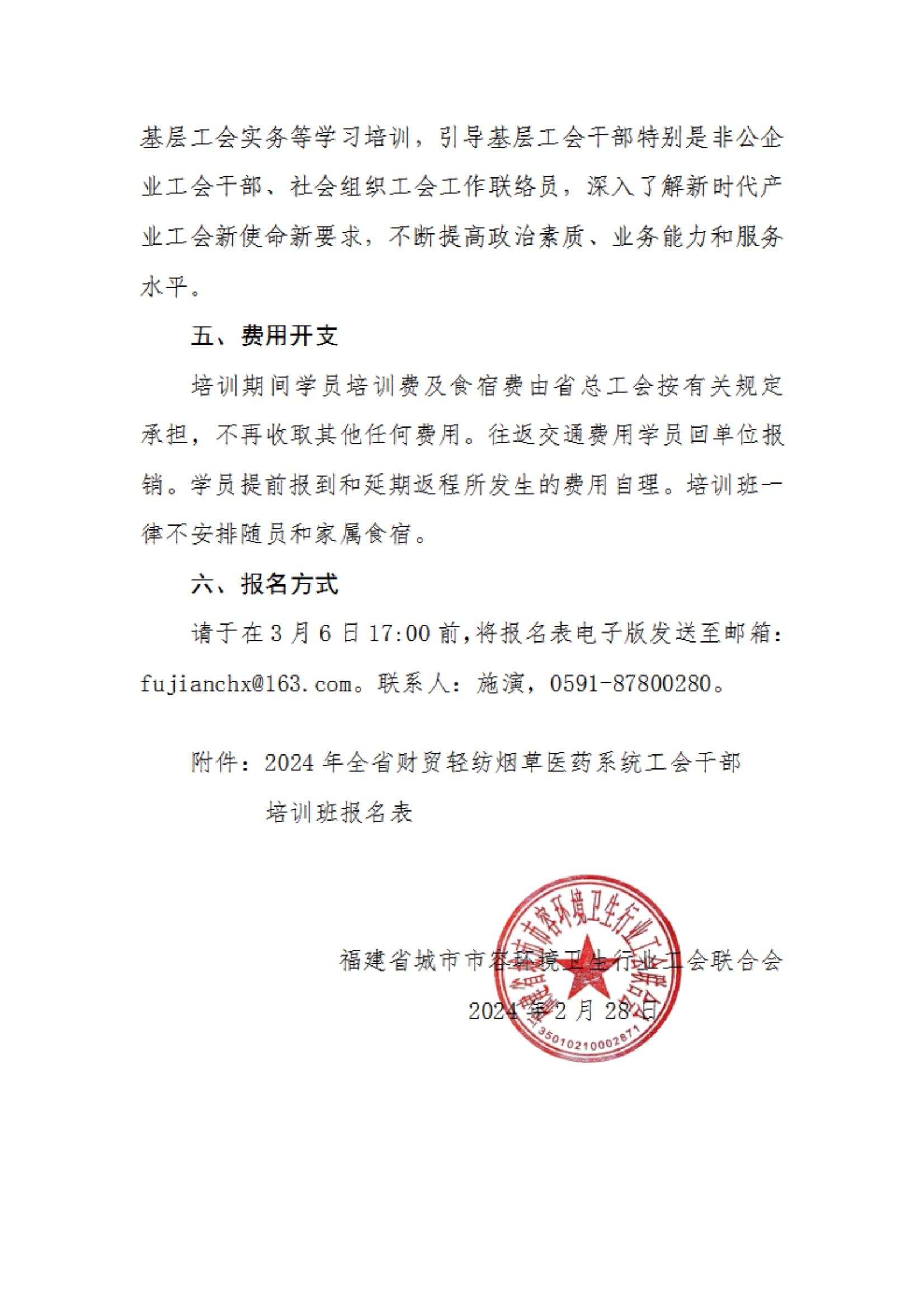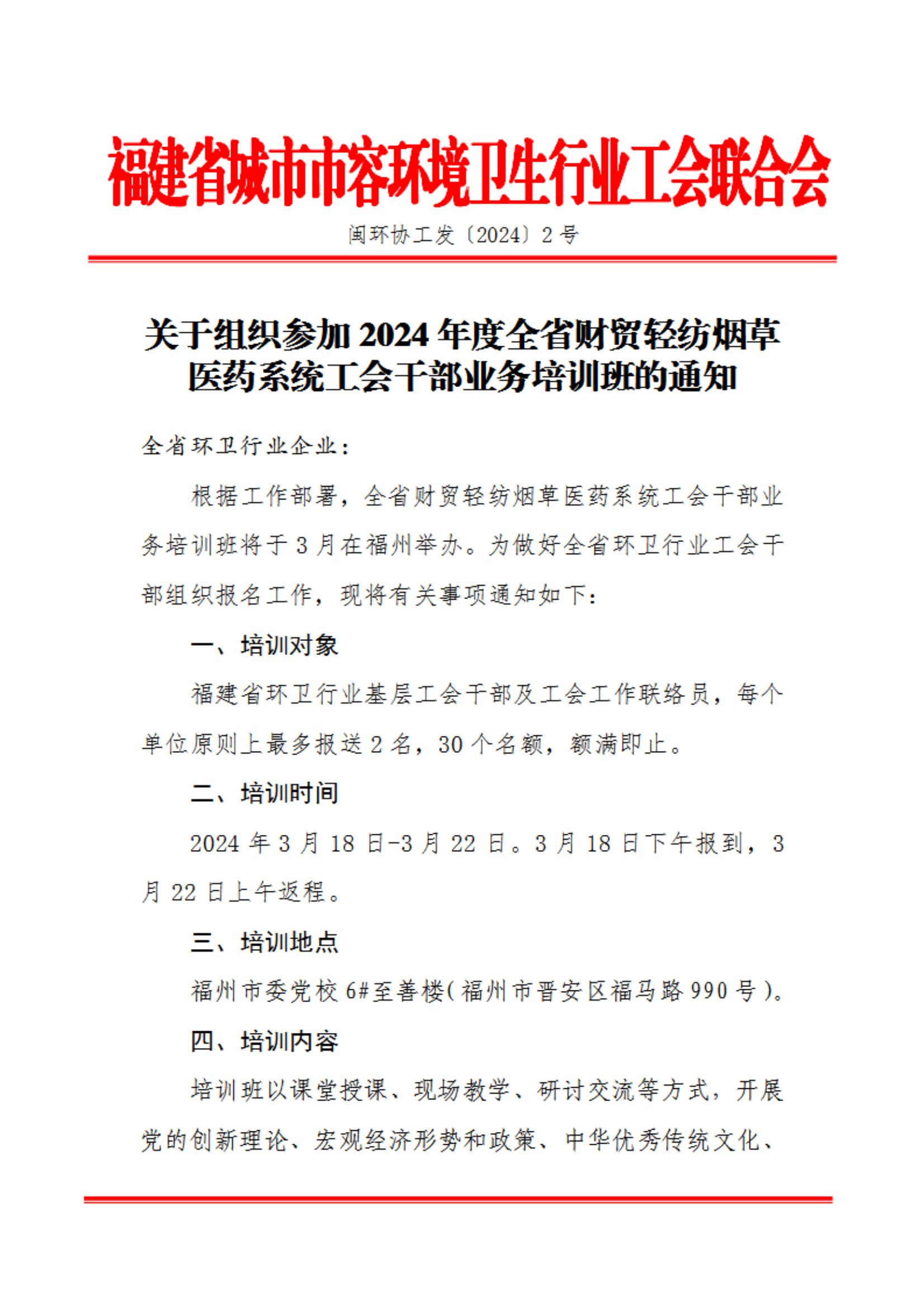 关于组织参加2024年度全省财贸轻纺烟草医药系统工会干部业务培训班的通知