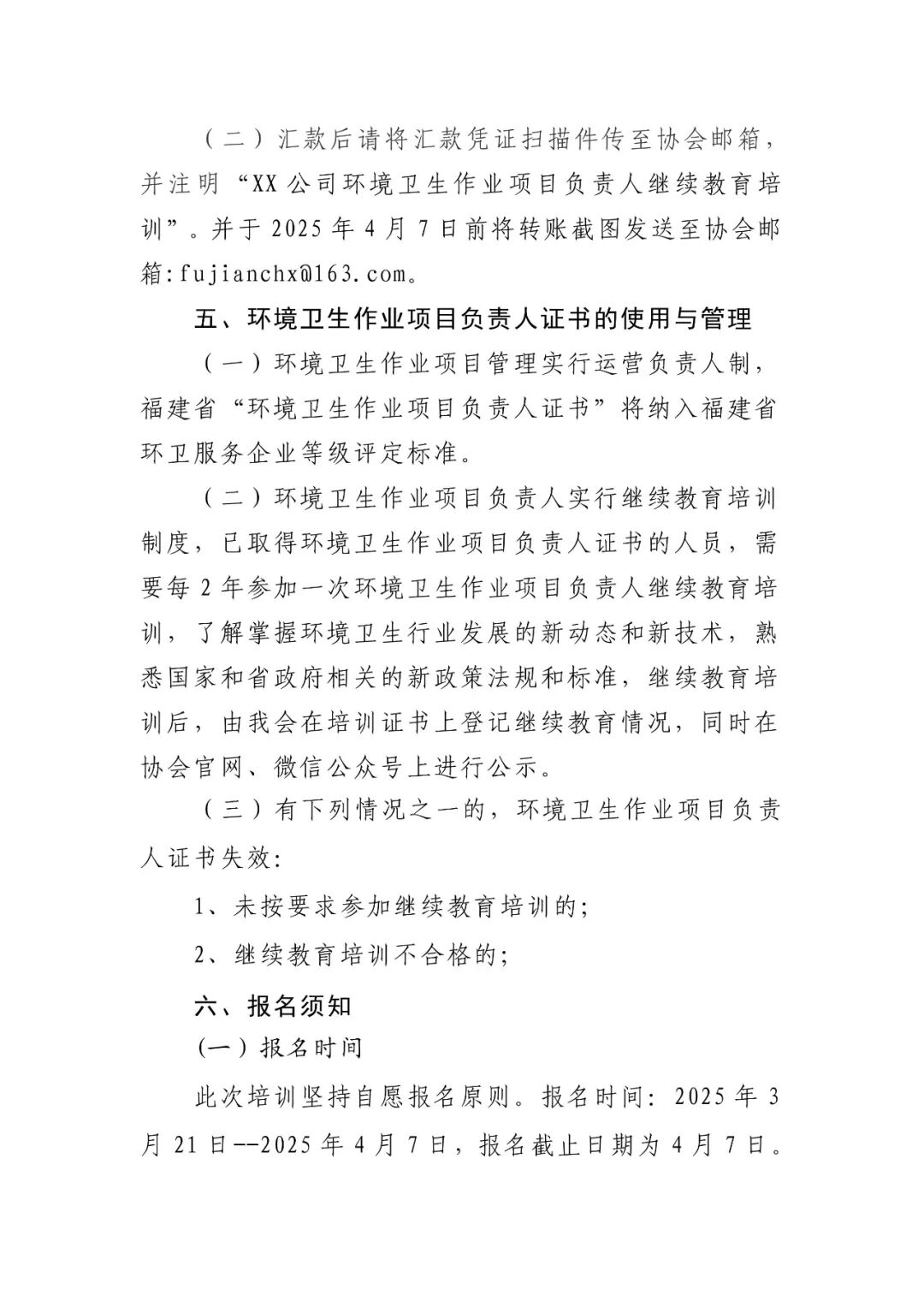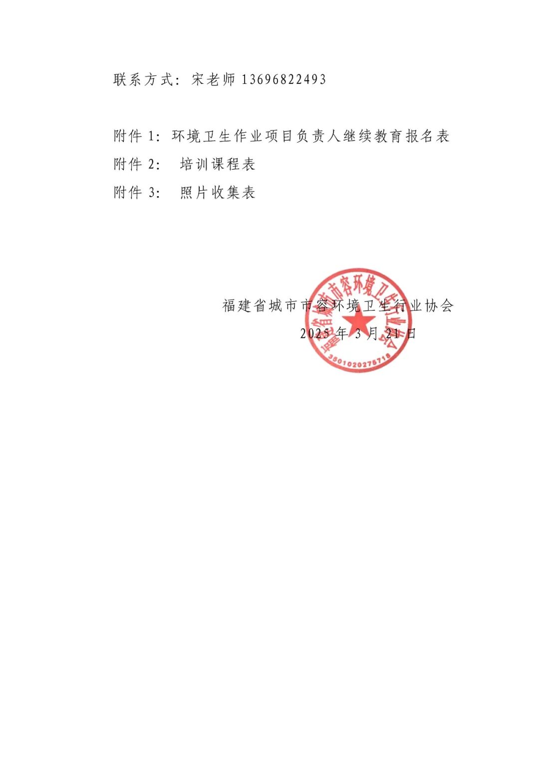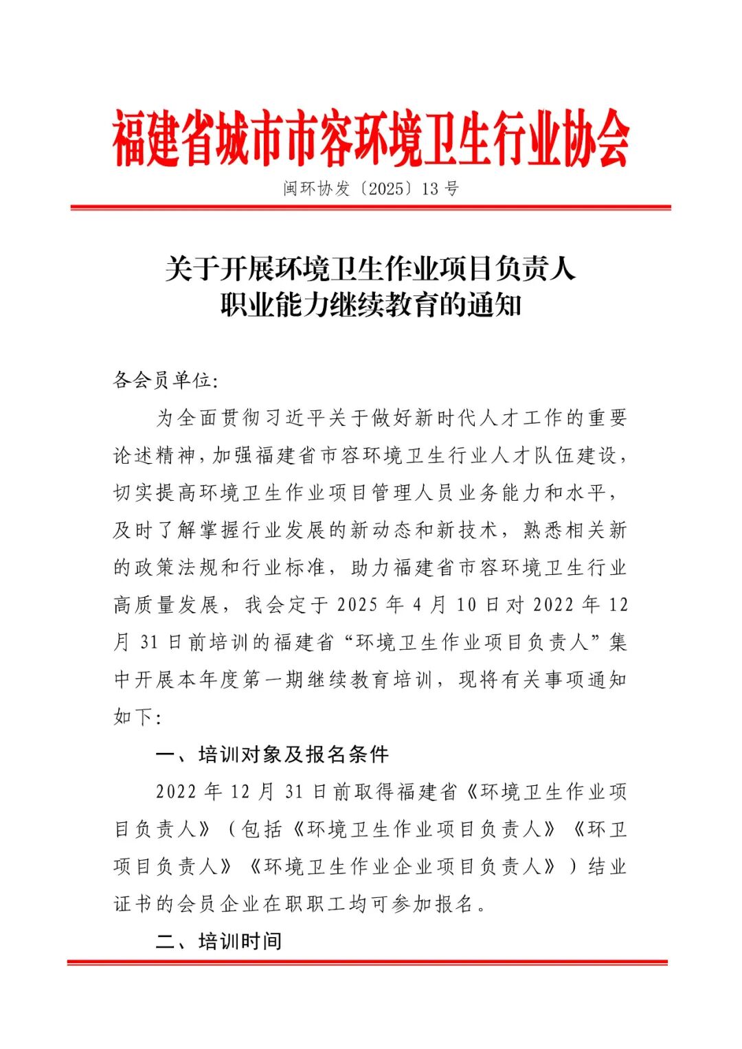 关于开展环境卫生作业项目负责人职业能力继续教育的通知