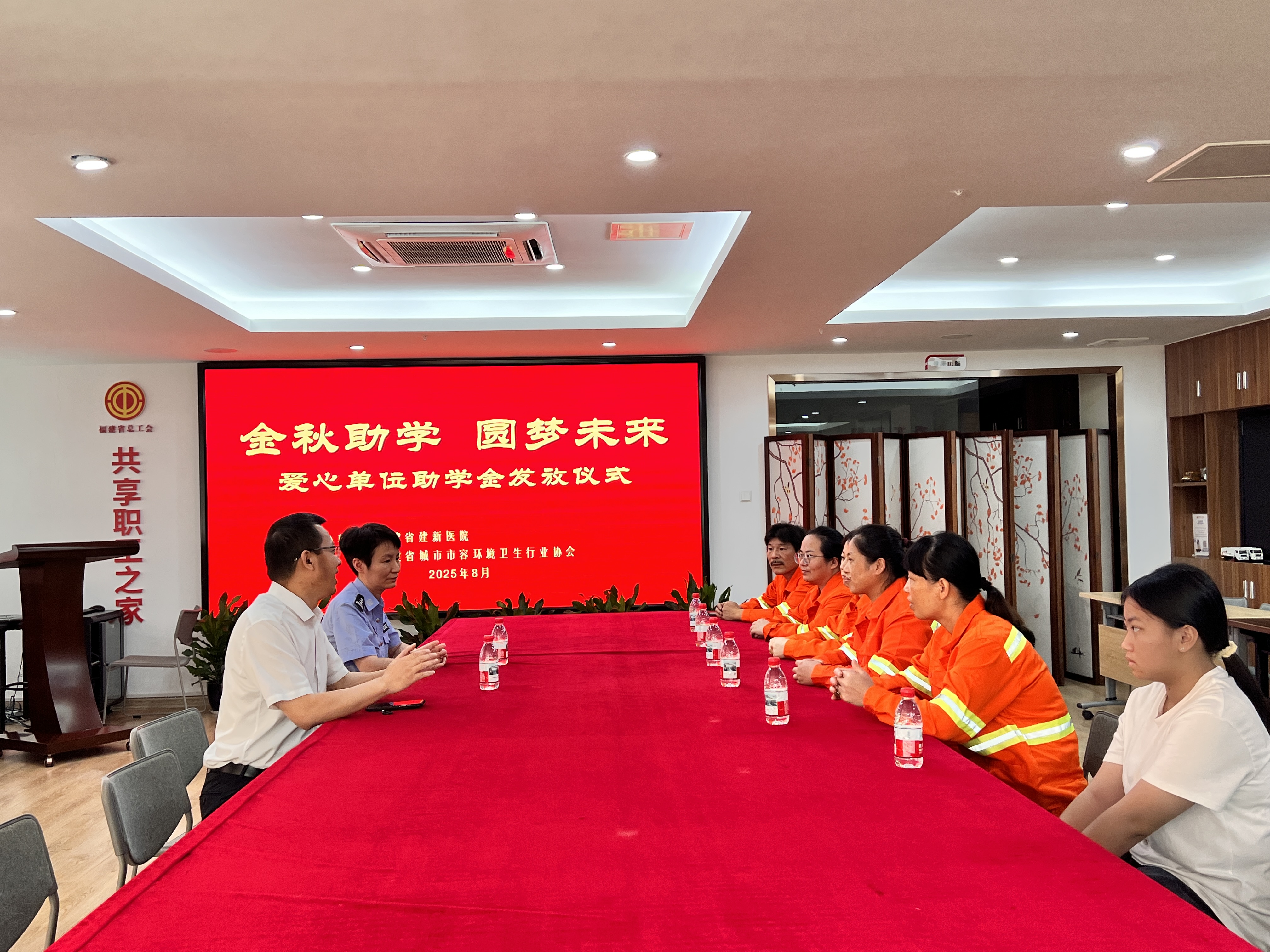 秋意渐浓,爱心送暖。8月22日,一场充满温情的助学金发放仪式在协会举行,为这个金秋时节增添了浓浓的暖意。福建省建新医院政治处常务副主任赵铮玲、协会副秘书长任永明及受助环卫职工家庭参加仪式。