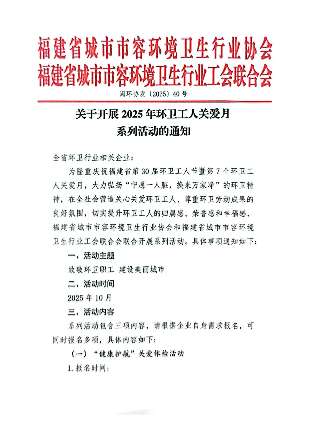 关于开展2025年环卫工人关爱月系列活动的通知