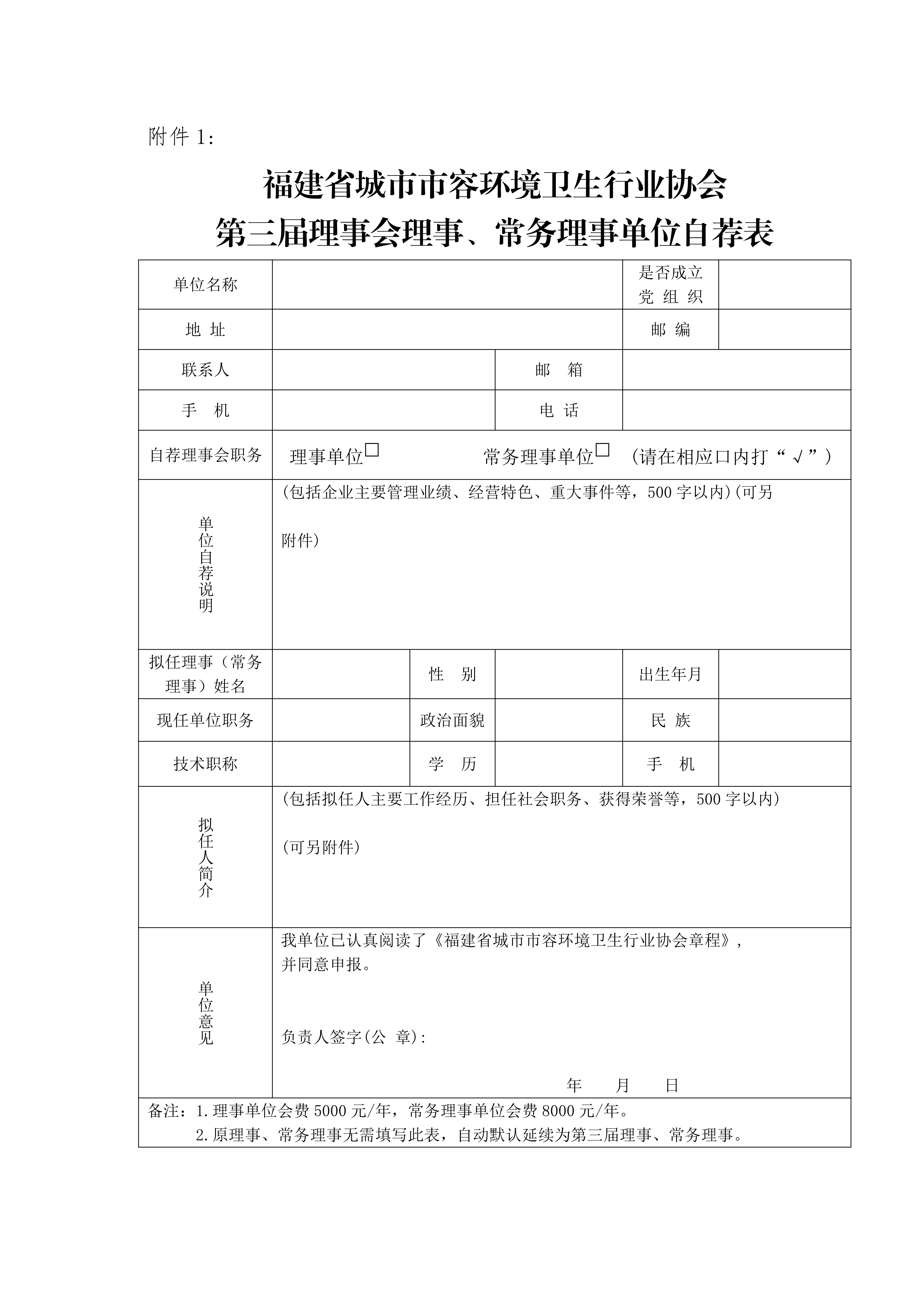 关于自荐福建省城市市容环境卫生行业协会第三届理事会理事、常务理事单位的通知