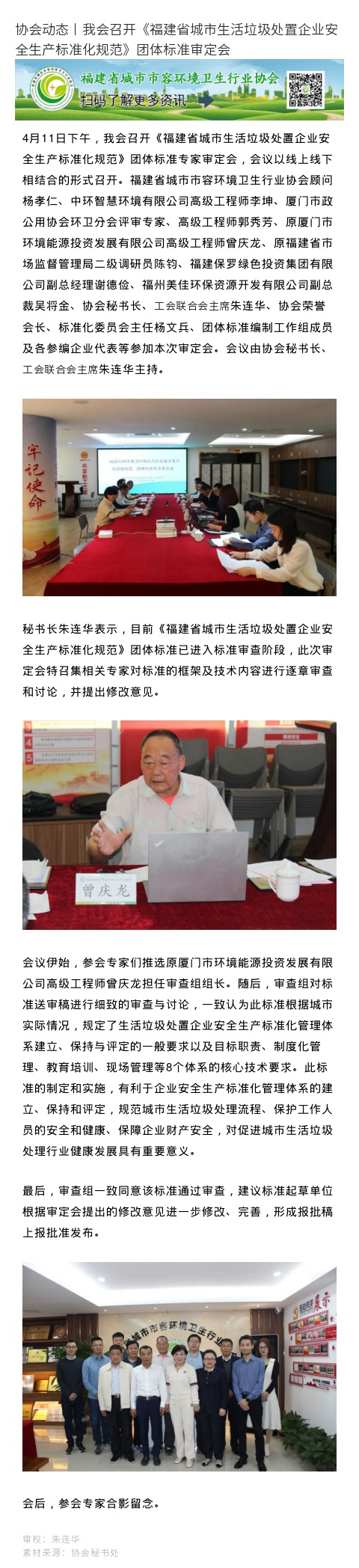 我会召开《福建省城市生活垃圾处置企业安全生产标准化规范》团体标准审定会