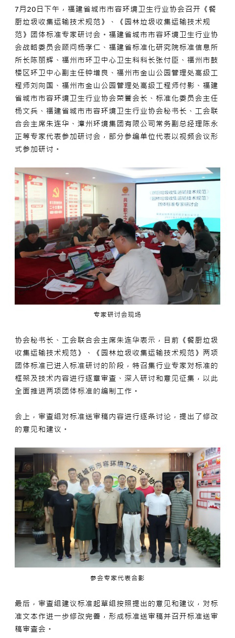 我会召开《餐厨垃圾收集运输技术规范》、《园林垃圾收集运输技术规范》团体标准专家研讨会
