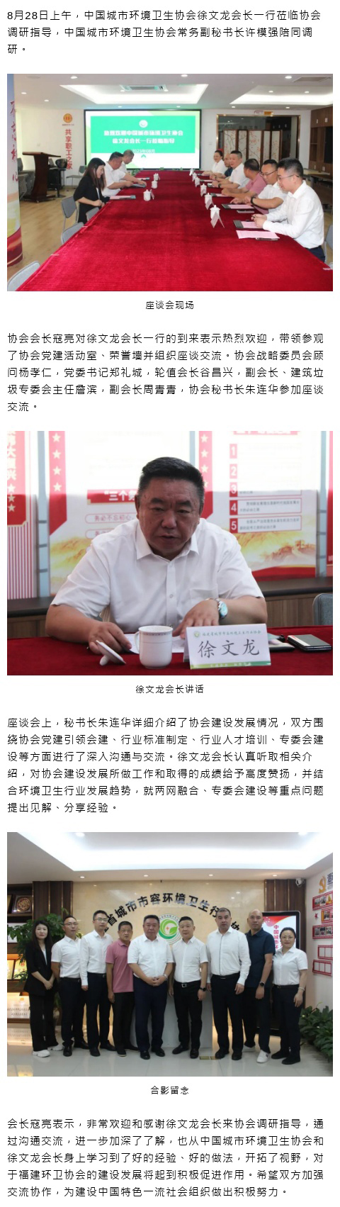 中国城市环境卫生协会徐文龙会长莅临我会调研指导