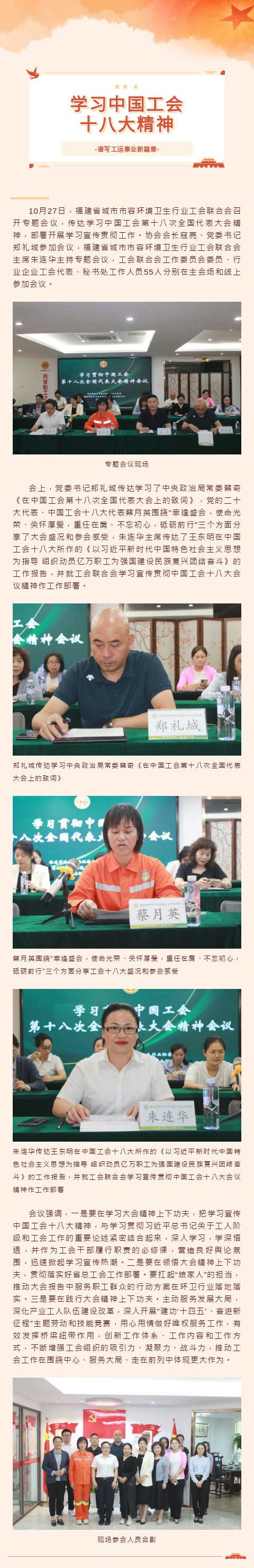 谱写工运事业新篇章丨福建省城市市容环境卫生行业工会联合会专题传达学习中国工会十八大精神