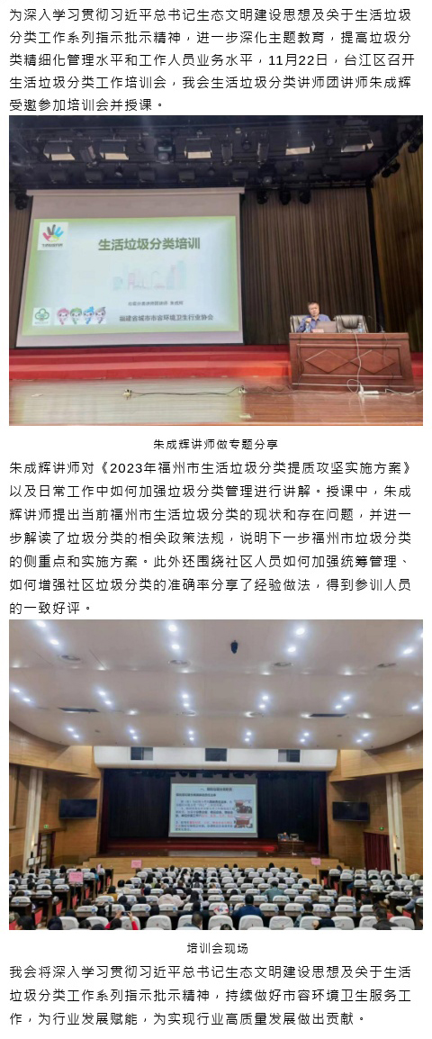 我会垃圾分类讲师团讲师朱成辉受邀请参加仓山区生活垃圾分类工作培训会
