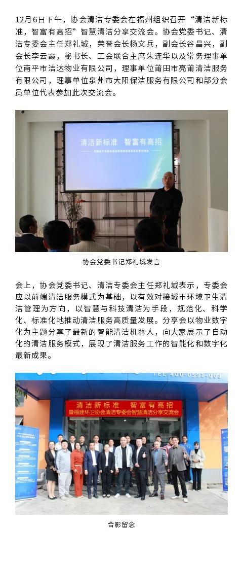 协会清洁专委会召开“清洁新标准,智富有高招”暨福建省环协清洁专委会智慧清洁分享交流会
