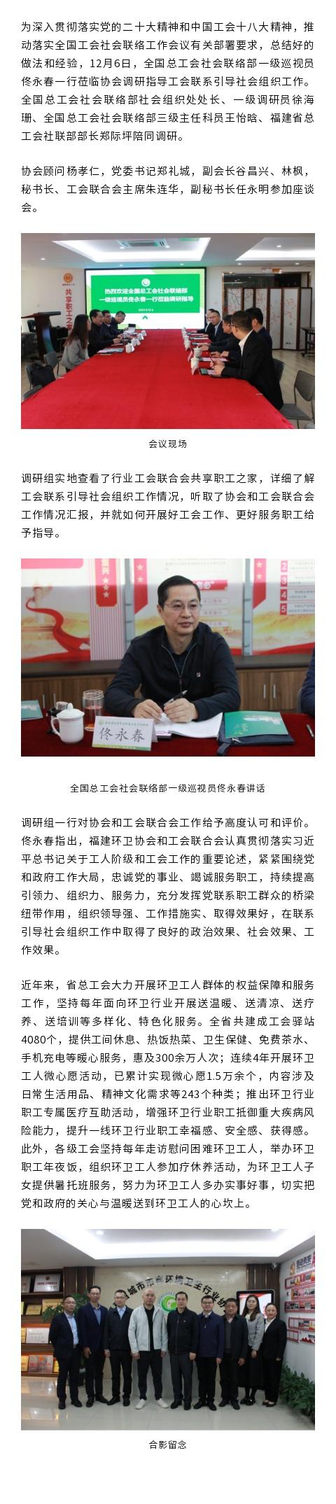 全国总工会社联部一级巡视员佟永春一行莅临协会调研指导工会联系引导社会组织工作