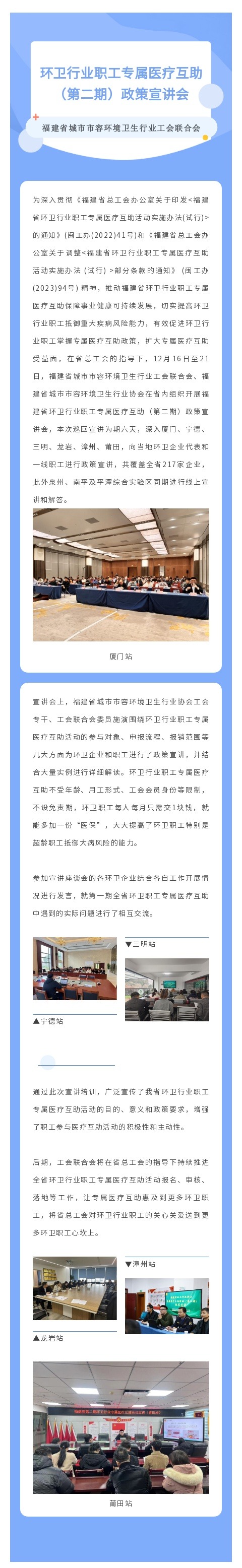 福建省城市市容环境卫生行业工会联合会、省环卫协会在省内开展环卫行业职工专属医疗互助(第二期)政策宣讲会