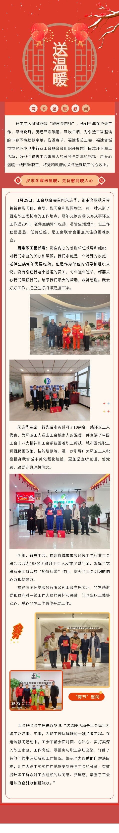 岁末冬寒送温暖,走访慰问暖人心——2024年“两节”慰问环卫职工送温暖活动