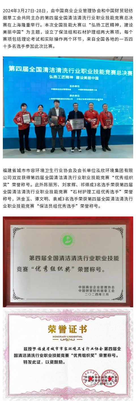 喜报!福建环卫协会选手在第四届全国清洁清洗行业职业技能竞赛总决赛中取得优异成绩