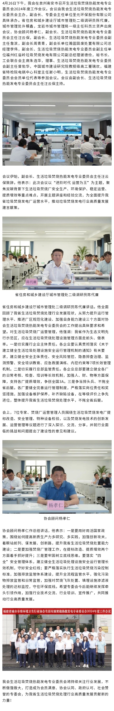 我会生活垃圾焚烧热能发电专业委员会2024年度工作会议顺利召开