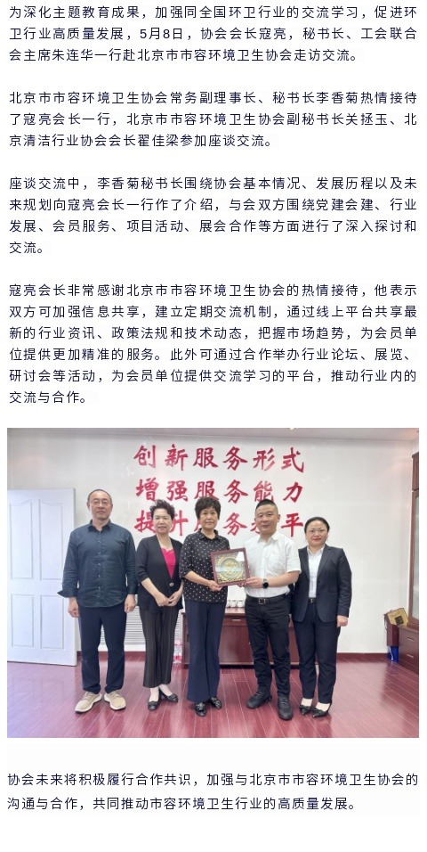 互学互鉴,共谋发展——寇亮会长一行赴北京市市容环境卫生协会走访交流