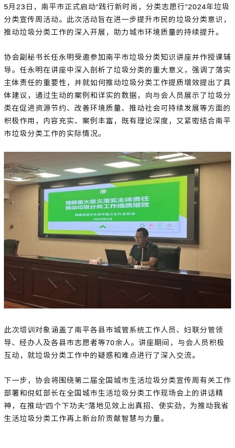 副秘书长任永明应邀参加南平市“践行新时尚,分类志愿行”分类宣传周活动并授课