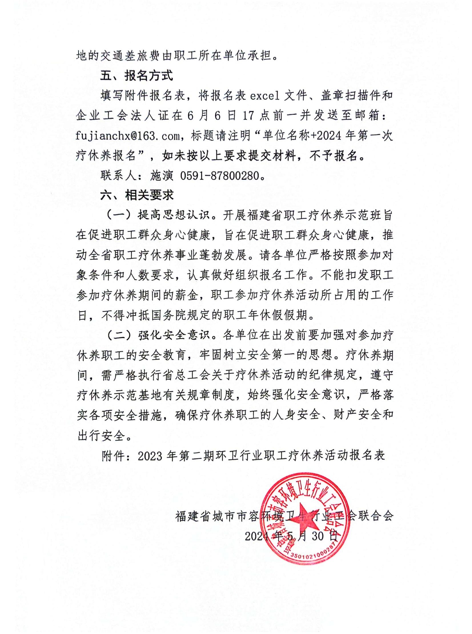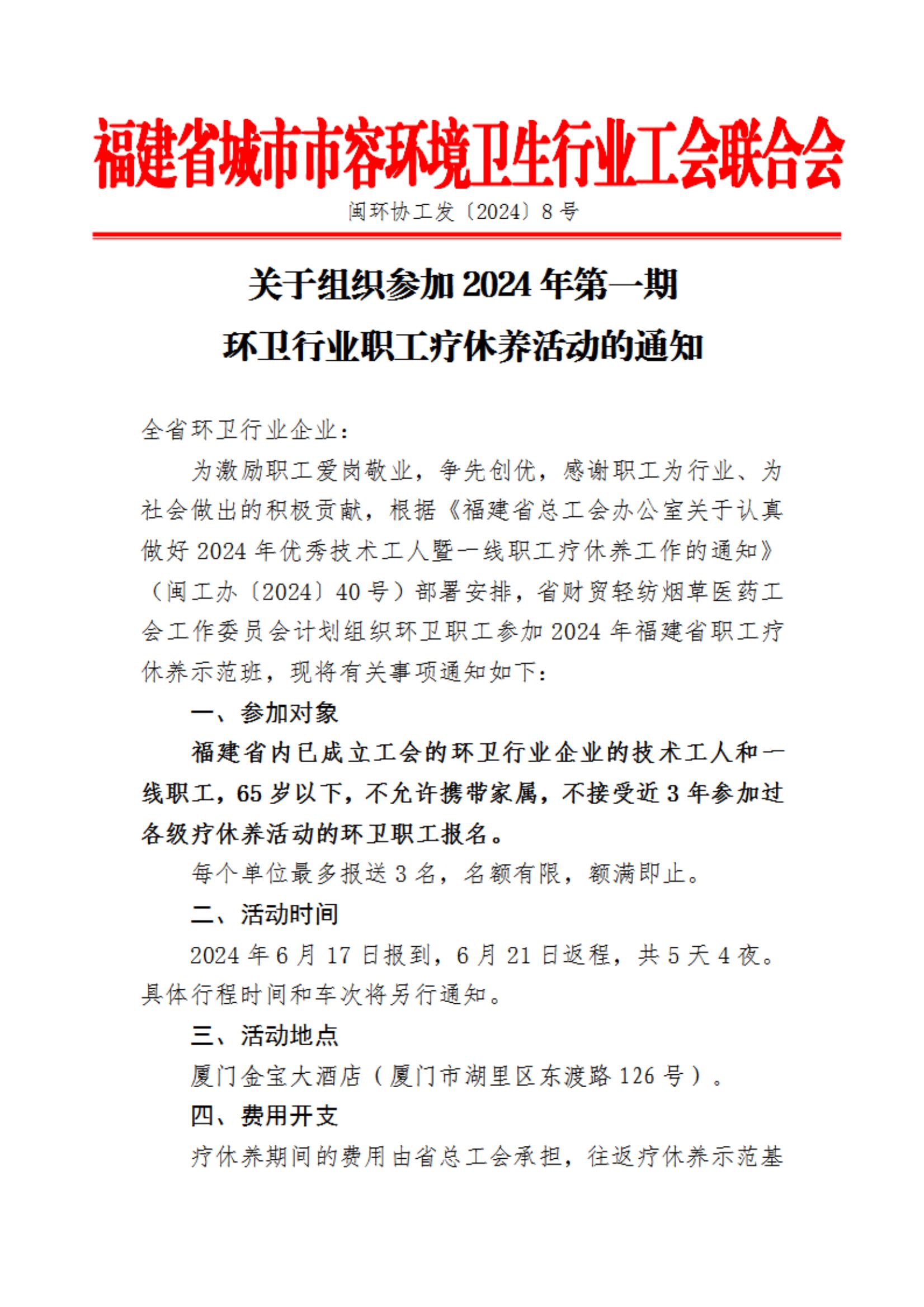 关于组织参加2024年第一期环卫行业职工疗休养活动的通知