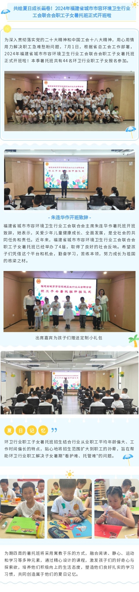 共绘夏日成长画卷!2024年福建省城市市容环境卫生行业工会联合会职工子女暑托班正式开班啦