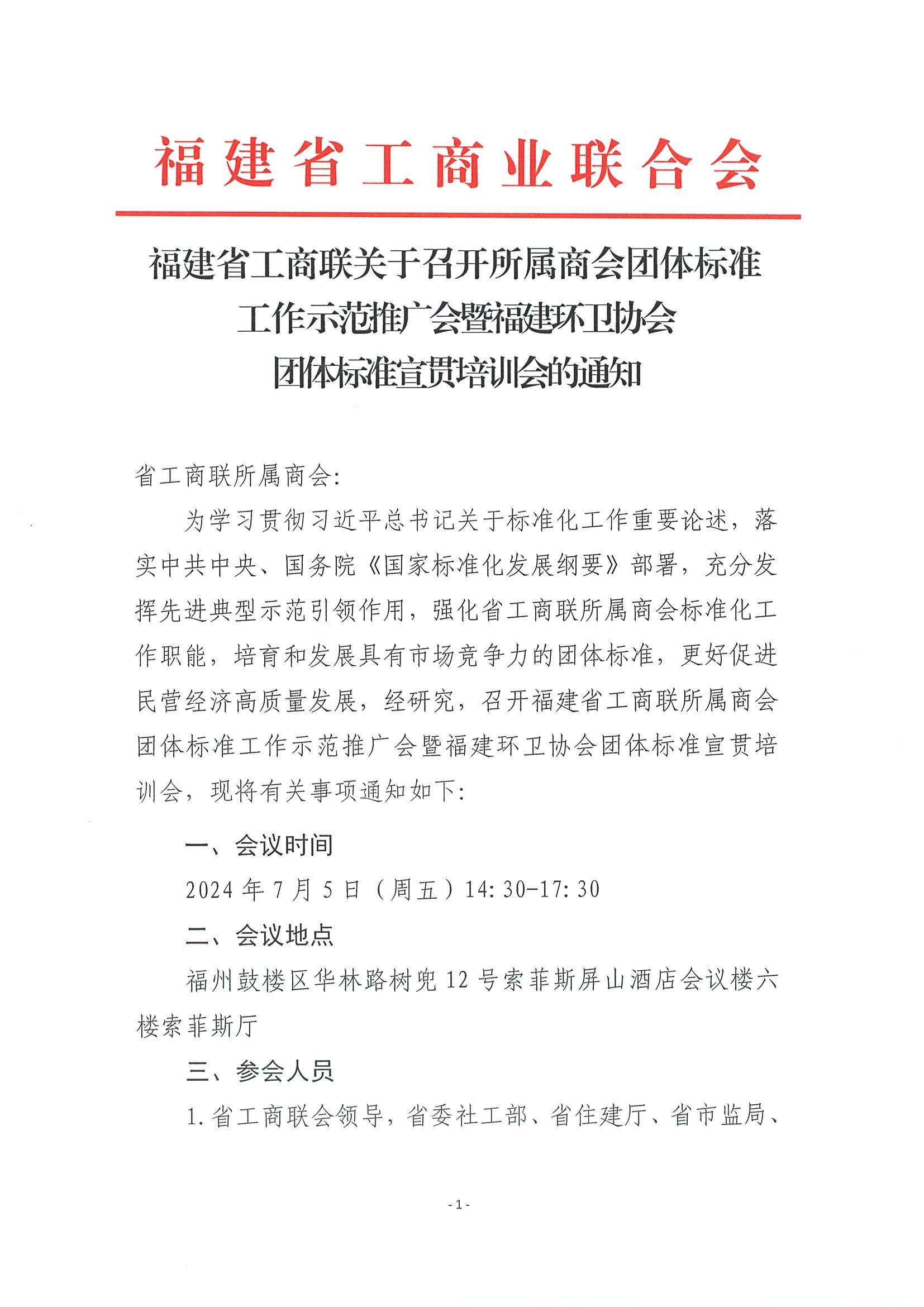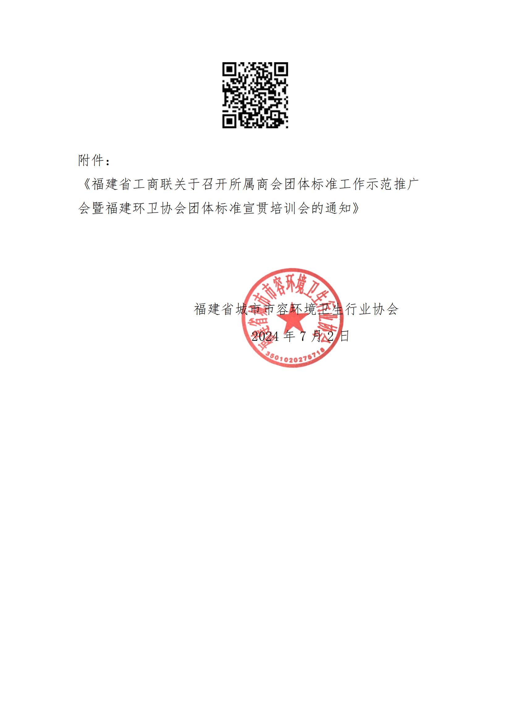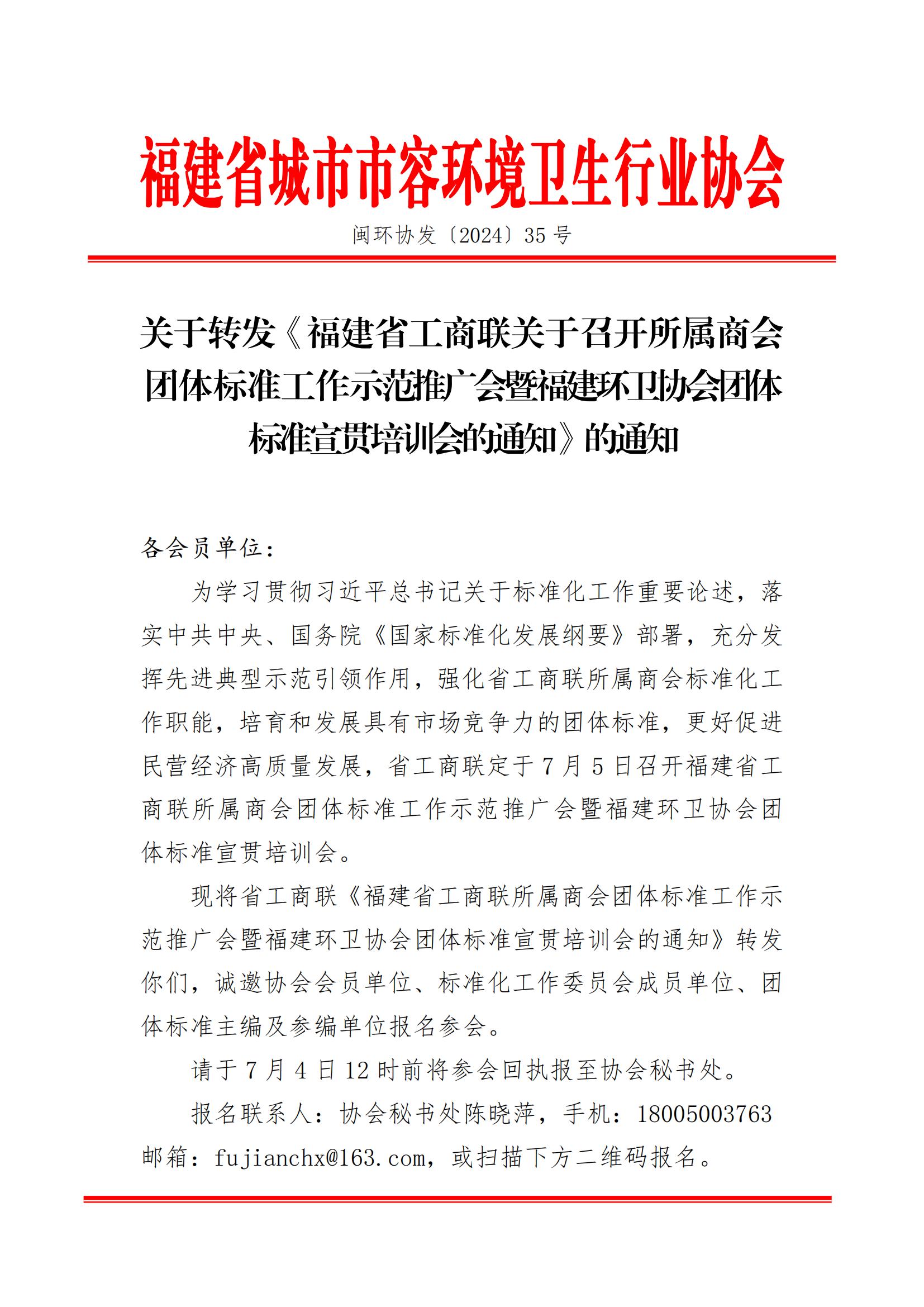 关于转发《福建省工商联关于召开所属商会团体标准工作示范推广会暨福建环卫协会团体标准宣贯培训会的通知》的通知