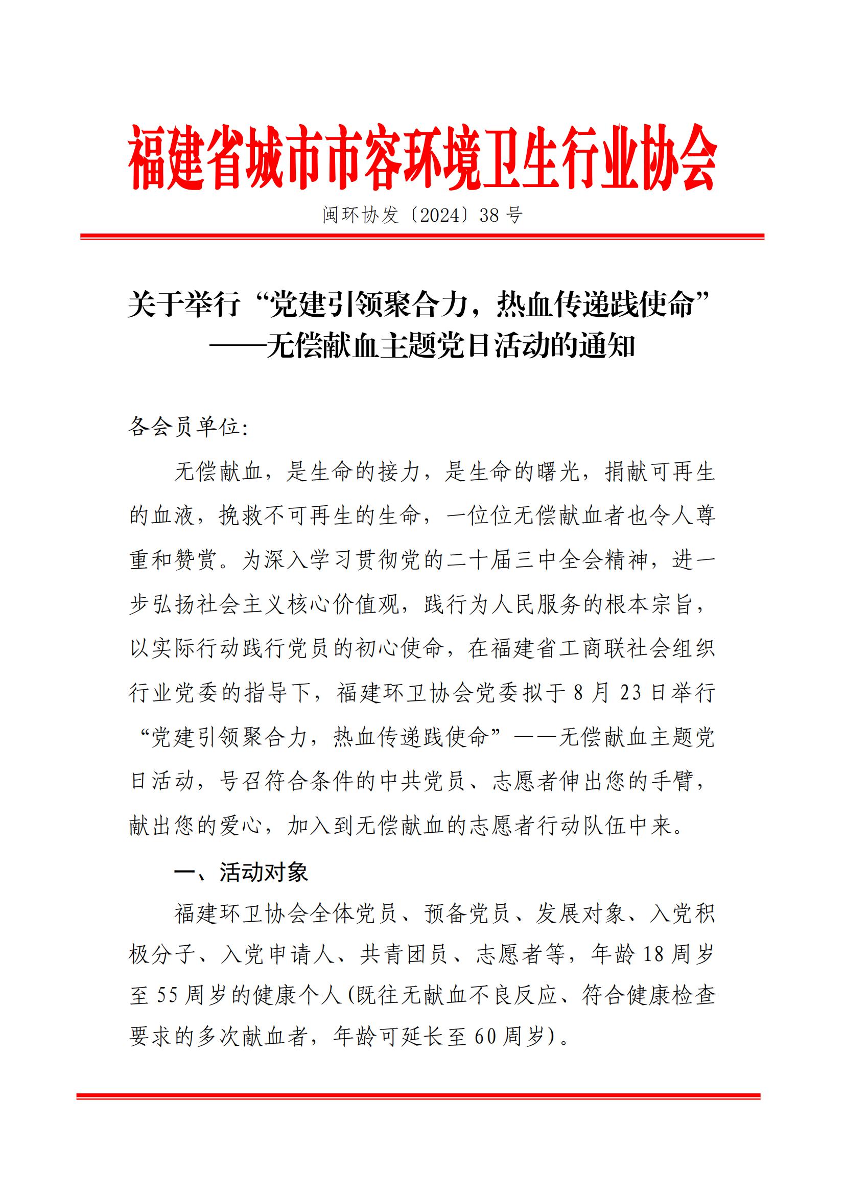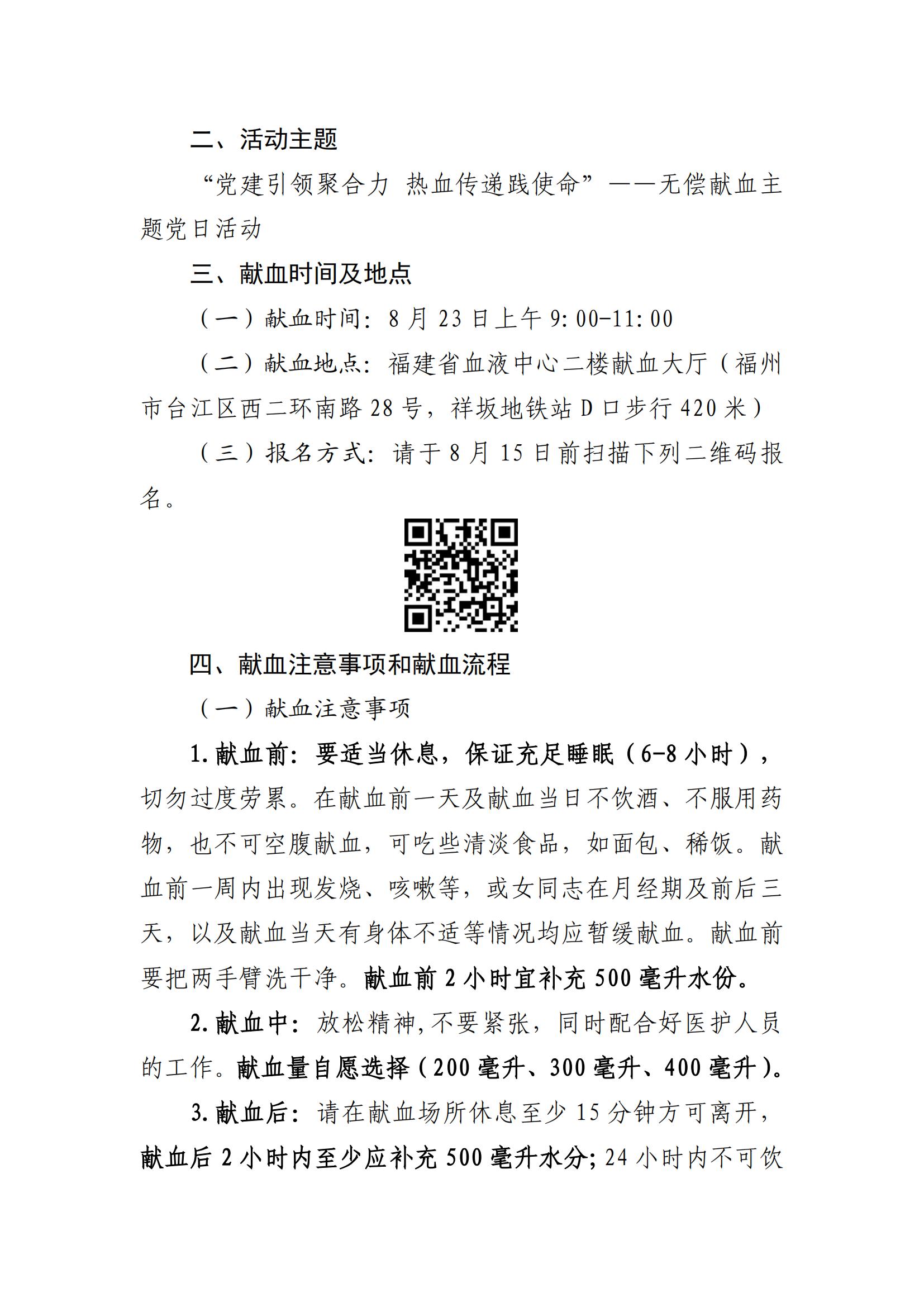 关于举行“党建引领聚合力,热血传递践使命”——无偿献血主题党日活动的通知
