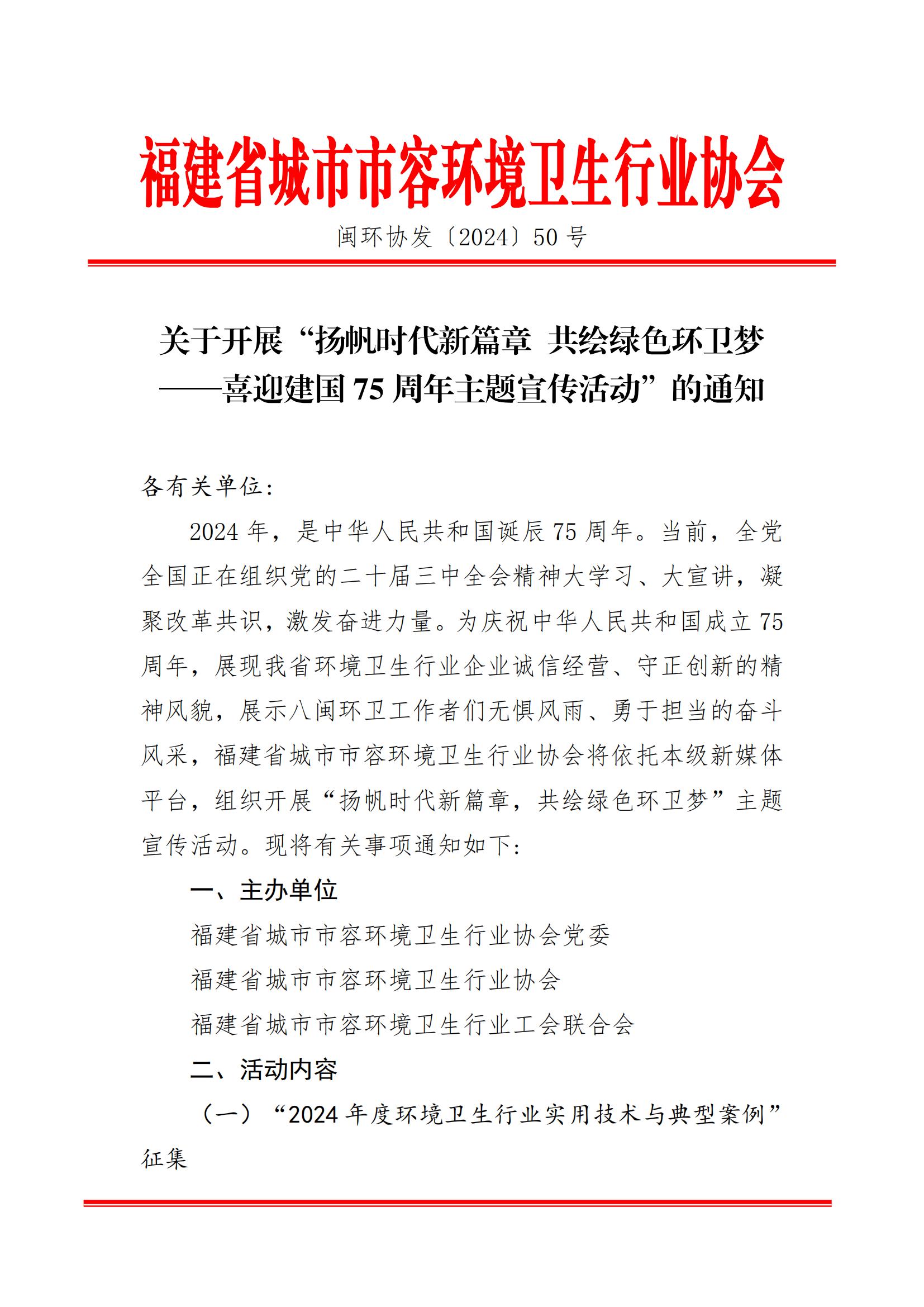 关于开展“扬帆时代新篇章 共绘绿色环卫梦——喜迎建国75周年主题宣传活动”的通知