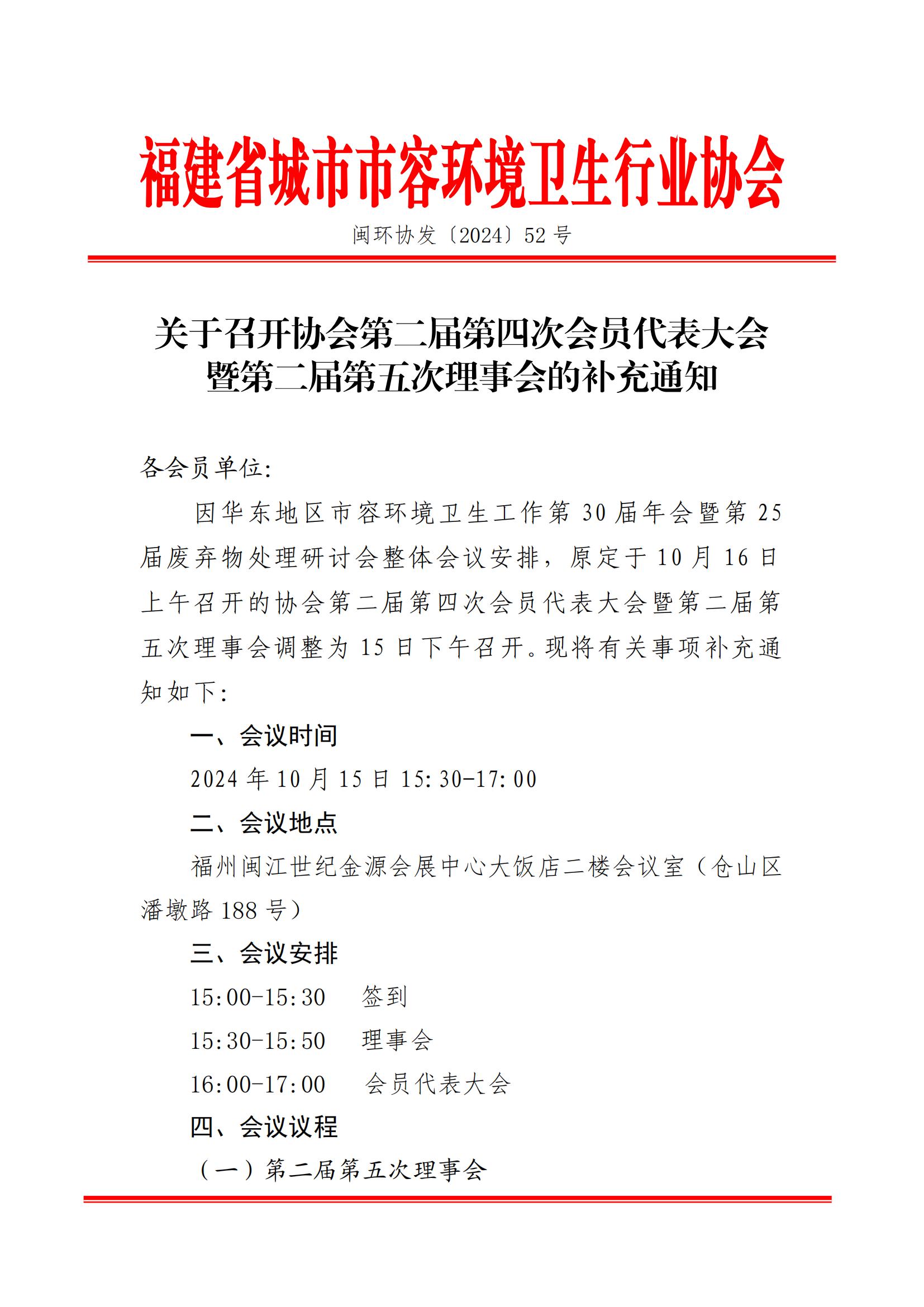 关于召开协会第二届第四次会员代表大会暨第二届第五次理事会的补充通知