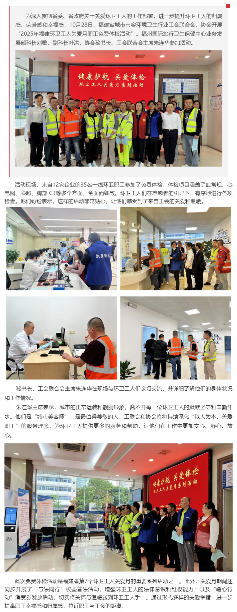 工联会开展2025年福建环卫工人关爱月职工免费体检活动
