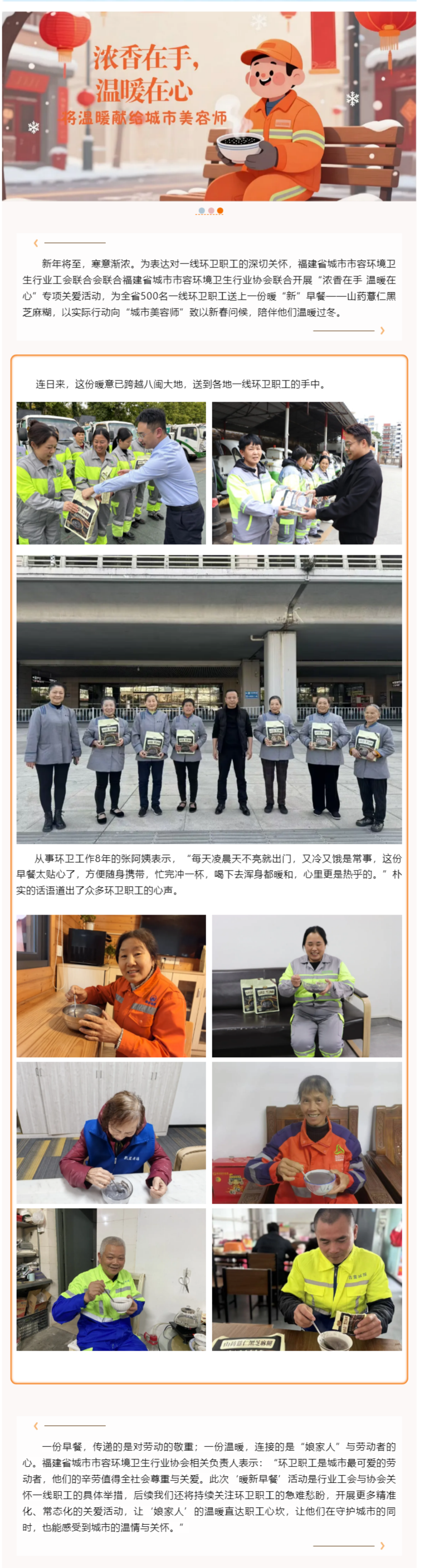 浓香在手 温暖在心--福建省关爱一线环卫职工暖“新”早餐活动圆满落幕